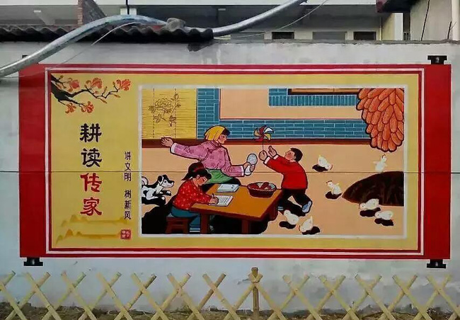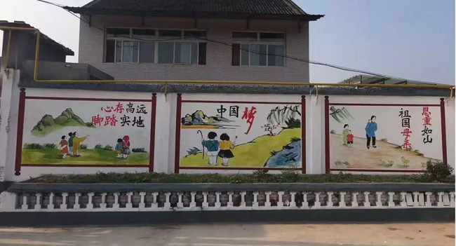 把乡村院墙作为宣传先进文化的有效载体,充分利用壁画、墙体绘画等表现形式,将社会主义核心价值观、中国梦、脱贫攻坚、扫黑除恶、道德文化、村规民约等展现在村民面前,让村民变“被动学”为“主动看”,促进村风、民风进一步改善。